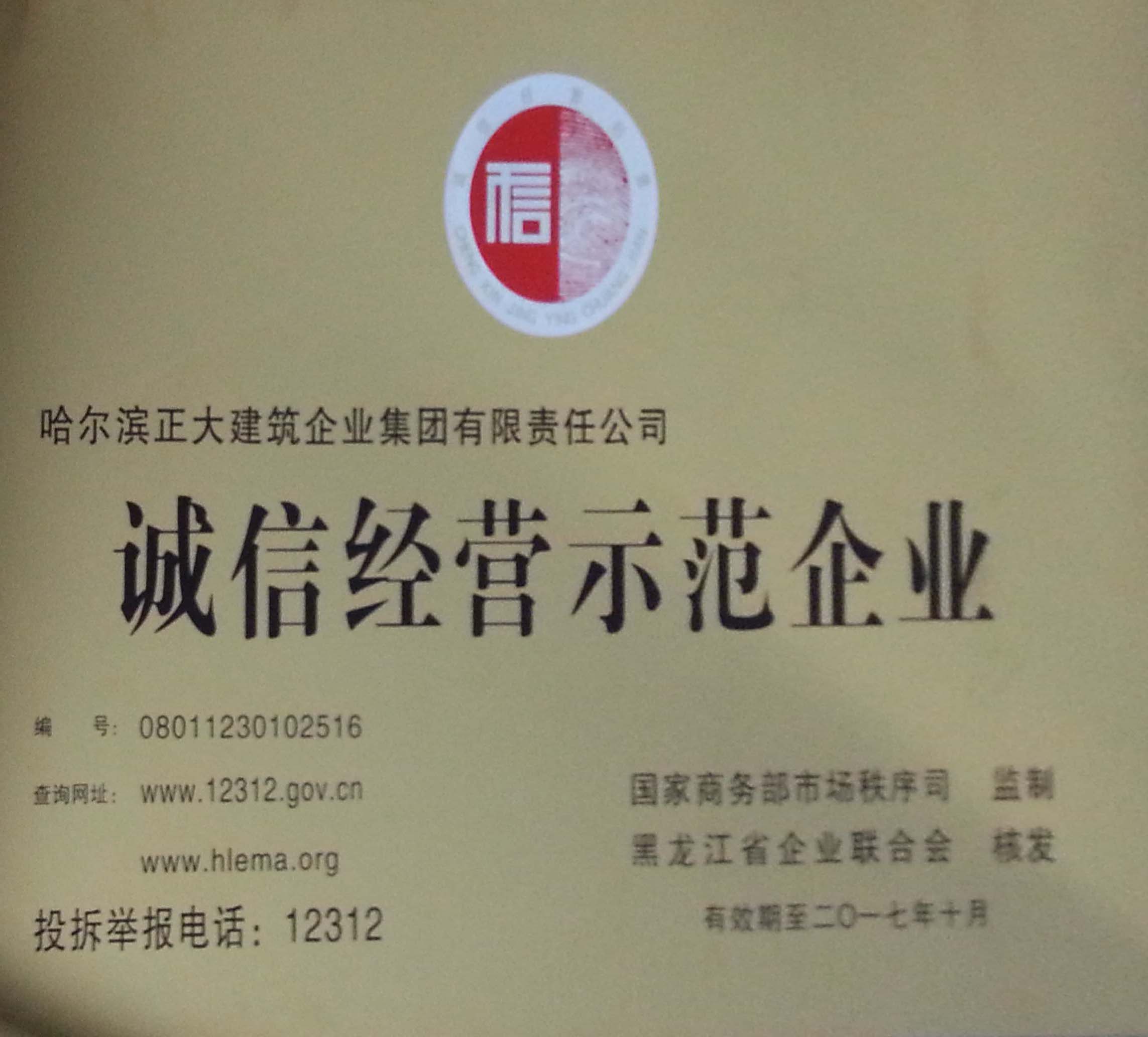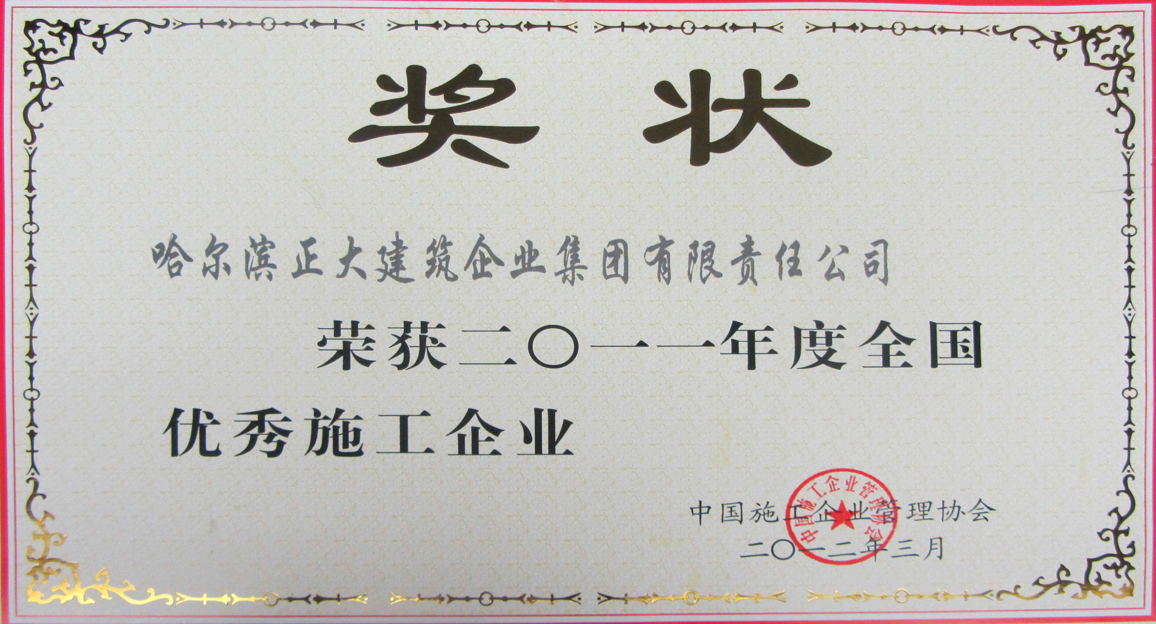 公司成立至今,先后被評(píng)為全國(guó)優(yōu)秀施工企業(yè)、全國(guó)用戶滿意施工企業(yè),全國(guó)首批建筑業(yè)誠(chéng)信施工企業(yè),全國(guó)“安康杯”競(jìng)賽優(yōu)勝企業(yè),全國(guó)工程建設(shè)質(zhì)量管理優(yōu)秀企業(yè)、中國(guó)建設(shè)系統(tǒng)企業(yè)信用信譽(yù)AAA級(jí)單位,并多次榮獲省、市“先進(jìn)單位”、“優(yōu)秀單位”、“重合同守信用單位”、“黑龍江省優(yōu)秀施工企業(yè)”、“黑龍江省用戶滿意施工企業(yè)”等光榮稱號(hào)。并連續(xù)獲得哈爾濱市質(zhì)量管理先進(jìn)單位、黑龍江省質(zhì)量管理先進(jìn)企業(yè)、黑龍江省質(zhì)量管理獎(jiǎng)、黑龍江省“安康杯”優(yōu)勝企業(yè)等榮譽(yù)。并在建筑施工現(xiàn)場(chǎng)環(huán)保管理上創(chuàng)造了一項(xiàng)“中國(guó)企業(yè)新記錄”。